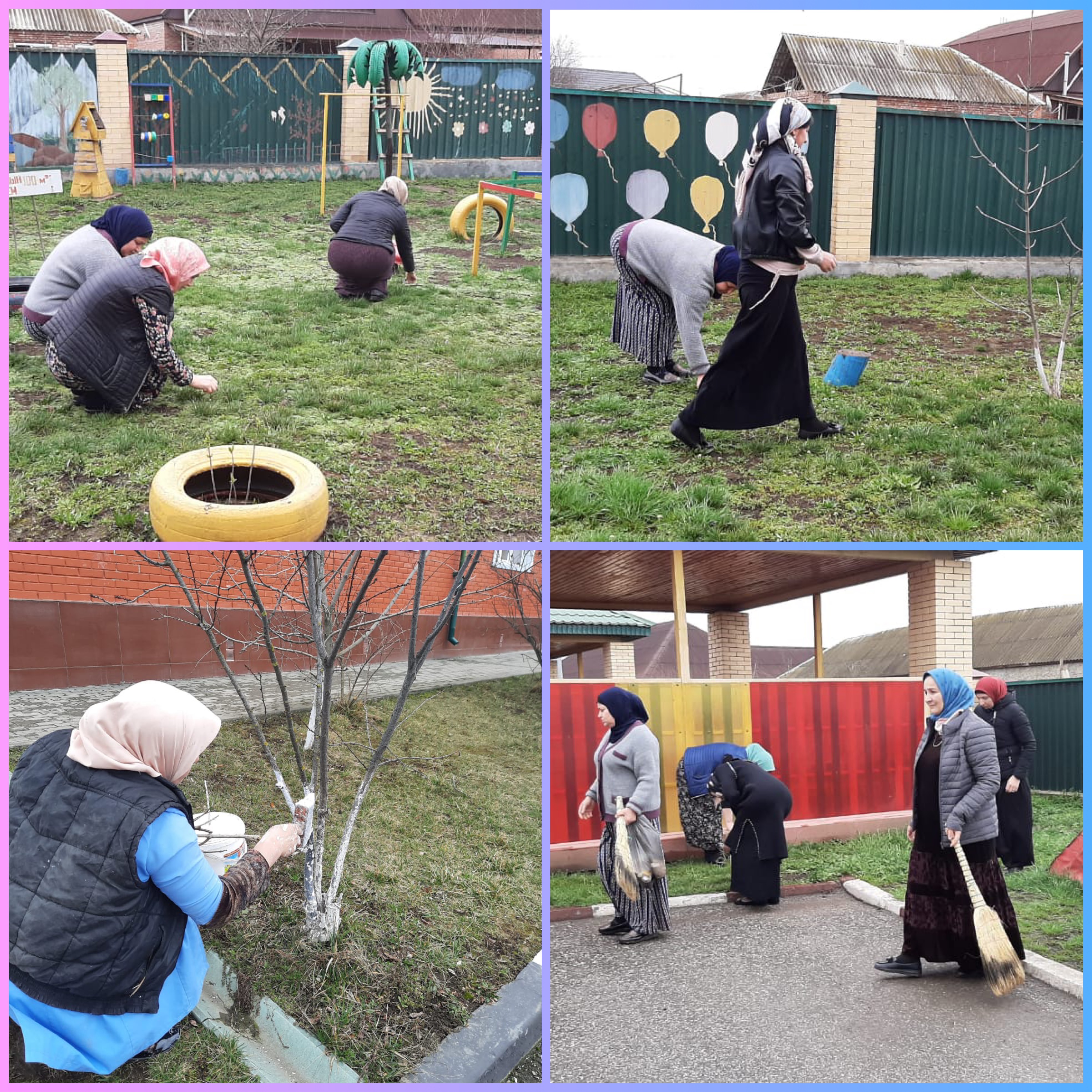 В субботнике приняли участие все сотрудники дошкольного учреждения. Были очищены газоны. Тщательно подметены прилегающие площадки, игровые площадки, обследовано и отремонтировано игровое оборудование.